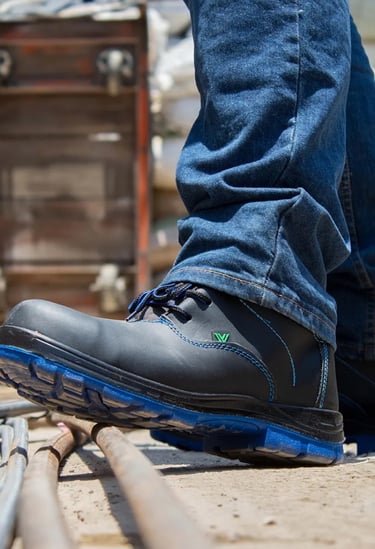 Suela antiderrapante y resistente a la abrasión, ideal para superficies industriales.
